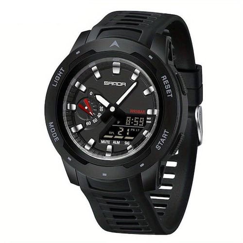 [Durabilidade exemplar]: Fabricado com materiais de alta qualidade como resina sintética e TPU, o relógio esportivo SANDA não é apenas elegante, mas também resistente ao uso intenso, acompanhando seu ritmo diário por muitos anos.[Resistente à água]: Com resistência à água de 5 ATM, você pode desfrutar de suas atividades em ambientes úmidos sem preocupações, levando o relógio para aventuras ao ar livre e esportes aquáticos leves.