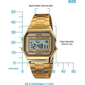 Conjunto de chips IC importados, bateria japonesa. Em uso normal, a bateria pode ser por três anos100FT/30M IMPERMEÁVEL:Não é possível nadar, apenas lavar as mãos, chuveiro frio, Satisfazer o uso diário. À prova d'água de 30 metros, não significa que possa ser colocado sob água 30M, mas o relógio pode suportar 3 atmosferas. A premissa deste padrão é que o teste seja realizado em condições laboratoriais: a temperatura é mantida em 20-25 graus Celsius, e o relógio Tanto a água quanto a água estão em repouso. Design casual elegante, caixa de ouro de luminá e rosto luminoso. Banda de aço inoxidável de três elos, design especial, fácil de alterar o comprimento da banda, flexível e confortável. Fecho de aço inoxidável e placa traseira lhe trará excelente experiência de desgaste.