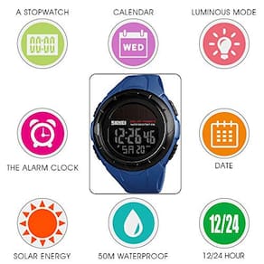 Este relógio esportivo digital solar foi projetado para homens que gostam de praticar esportes ao ar livre. Pulseira de PU não tóxica e de alta qualidade, além de excelente acabamento, este relógio oferece grande suavidade e conforto.