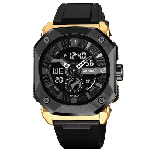 Preparado para acompanhar o seu ritmo, o cronômetro surge como uma opção versátil para homens que levam uma vida repleta de atividades. Este relógio esportivo combina funcionalidade avançada com design moderno, oferecendo uma tela analógica-digital que facilita a leitura de tempo mesmo em ambientes escuros, graças à sua prática luz LED. Com resistência à água de até 5 bar, você pode se movimentar sem preocupações, seja na academia, ao ar livre ou em atividades casuais.