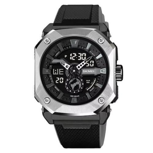 Preparado para acompanhar o seu ritmo, o cronômetro surge como uma opção versátil para homens que levam uma vida repleta de atividades. Este relógio esportivo combina funcionalidade avançada com design moderno, oferecendo uma tela analógica-digital que facilita a leitura de tempo mesmo em ambientes escuros, graças à sua prática luz LED. Com resistência à água de até 5 bar, você pode se movimentar sem preocupações, seja na academia, ao ar livre ou em atividades casuais.