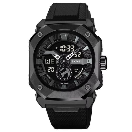 Preparado para acompanhar o seu ritmo, o cronômetro surge como uma opção versátil para homens que levam uma vida repleta de atividades. Este relógio esportivo combina funcionalidade avançada com design moderno, oferecendo uma tela analógica-digital que facilita a leitura de tempo mesmo em ambientes escuros, graças à sua prática luz LED. Com resistência à água de até 5 bar, você pode se movimentar sem preocupações, seja na academia, ao ar livre ou em atividades casuais.