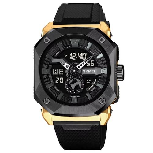 Preparado para acompanhar o seu ritmo, o cronômetro surge como uma opção versátil para homens que levam uma vida repleta de atividades. Este relógio esportivo combina funcionalidade avançada com design moderno, oferecendo uma tela analógica-digital que facilita a leitura de tempo mesmo em ambientes escuros, graças à sua prática luz LED. Com resistência à água de até 5 bar, você pode se movimentar sem preocupações, seja na academia, ao ar livre ou em atividades casuais.