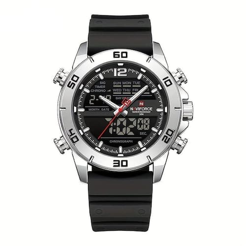 Este relógio esportivo masculino com dupla exibição é a fusão perfeita de estilo e funcionalidade, ideal para aqueles que não abrem mão de estar na moda enquanto mantêm a eficiência nos compromissos diários. Com um design robusto e sofisticado, ele se destaca por sua versatilidade, sendo um acessório indispensável para o homem moderno e ativo.