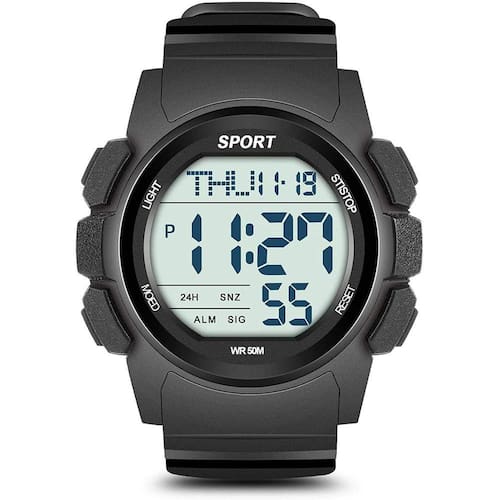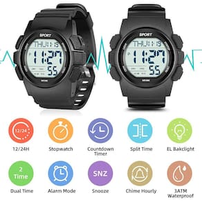 Relógio Digital Simples Masculino: Design de discagem elegante e simples, use-o facilmente no dia a dia ou ambiente de escritórioMultifuncional Relógio Digital para Homens: com fuso horário duplo, suporta comutação 12 / 24H, e também suporta múltiplos modos de alarme, tornando a vida mais conveniente Relógio de esportesdigital: Este relógio tem funções como cronômetro, contagem regressiva, tempo fracionado, também tem luz de fundo EL, , atender às necessidades básicas de esportes ao ar livreSa de alta qualidade Sport Watch Impermeável: Estojo ABS, alça PU, duro e durável, também têm função impermeável de 5ATM, atender às necessidades diáriasSales Garantia: Fornece garantia de 24 meses, permitindo que você elimine as preocupações de compra. Qualquer problema, forneceremos solução satisfatória dentro de 24 horas