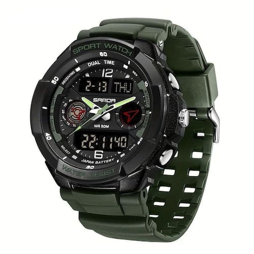 Recursos e Benefícios: [Resistência à água] até 50m: Nunca se preocupe em tirar o relógio para atividades aquáticas. Este relógio esportivo foi projetado para suportar até 5 ATM, garantindo durabilidade e desempenho em ambientes úmidos e aquáticos. [Display duplo, digital] e analógico: Combine o melhor dos dois mundos com um display que oferece a elegância do analógico e a funcionalidade do digital. A leitura rápida e clara das horas garante que você nunca perca um segundo, mesmo nas corridas mais intensas. [Pulseira de borracha] confortável: Desfrute de um ajuste perfeito e confortável, ideal para usos prolongados. Esta pulseira é resistente ao suor e aos impactos, proporcionando máxima durabilidade e conforto em qualquer situação esportiva. [Função de data] prática: Mantenha-se organizado e pontual com a função de data integrada. Nunca mais se perca nos seus compromissos, mantendo tudo visível e de fácil acesso com apenas um olhar. [Luz noturna] para visibilidade: Aumente sua capacidade de ver as horas mesmo no escuro. A luz noturna embutida é perfeita para corredores noturnos, acampamentos e qualquer atividade em baixa luminosidade, garantindo que você tenha controle total sobre suas métricas a qualquer hora do dia.