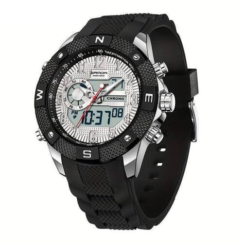 [Estilo] Com um design esportivo e arrojado, este relógio traz um toque de modernidade ao seu visual sem abrir mão da elegância clássica. [Funcionalidade] Dupla exibição que facilita a leitura do horário e suas funções, como cronômetro e despertador, sempre à mão. [Durabilidade] Construído com uma robusta caixa de liga de zinco e alimentação por bateria de botão, garantindo longa duração sem preocupações. [Conforto] Pulseira de silicone ível e confortável, ideal para um uso prolongado, seja no trabalho ou em atividades esportivas. [Versatilidade] À prova d'água, é um companheiro confiável para diversas situações, desde reuniões até práticas esportivas.