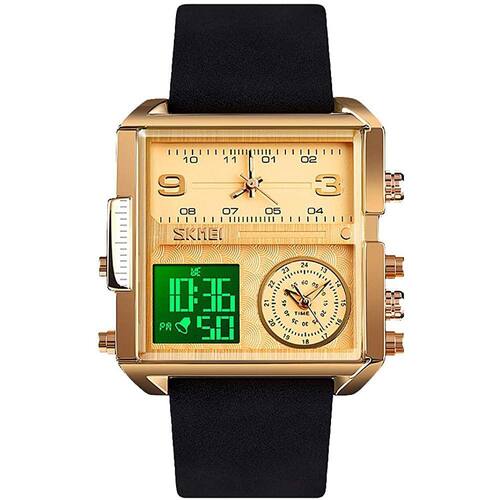 Relógio esportivo SKMEI, relógio de pulso analógico de quartzo com vários fusos horários e cronômetro - à prova d`água