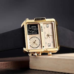 Relógio Multifuncional Militar Mens importado- Mostrador de exibição triplo fresco exclusivo com cronômetro e alarme e data e formato de 12/24 horas, mostrador facial grande LED com a clássica banda de couro ou banda de aço inoxidável, simples e grandioso, expressivo do seu sabor extraordinário Digital Sports Watch: Movimento de quartzo de alta qualidade com tela analógica de três fusos horários, três fusos horários de trabalho é muito conveniente para viajar. Design de discagem esportiva da moda, Mostrador Grande e números com luz, mostram o tempo claro no escuro Confortável e Durável: A faixa de couro Superior que é macia e respirável; a banda de aço inoxidável é clássica e durável, ótima para o uso diário e proporciona uma experiência maravilhosa de desgaste. Perfeito para atividades internas e externas Relógio impermeável para uso diário: 3 ATM À prova d'água: Lavagem das mãos, Dia da Chuva, Sudorese, SEM Problema. NÃO é adequado para mergulho, natação, snorkeling, trabalho relacionado à água Bom Presente para Men Boys: Seu design especial de moda leva você à beira da moda esportiva. Um presente perfeito para famílias e amigos no Natal, Ação de Graças, Dia dos Pais. Adequado para homens ou qualquer um que gosta de relógio de discagem grande deve amar este relógio esporte de moda