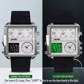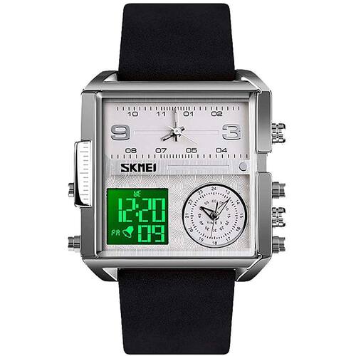 Relógio Multifuncional Militar Mens importado- Mostrador de exibição triplo fresco exclusivo com cronômetro e alarme e data e formato de 12/24 horas, mostrador facial grande LED com a clássica banda de couro ou banda de aço inoxidável, simples e grandioso, expressivo do seu sabor extraordinário Digital Sports Watch: Movimento de quartzo de alta qualidade com tela analógica de três fusos horários, três fusos horários de trabalho é muito conveniente para viajar. Design de discagem esportiva da moda, Mostrador Grande e números com luz, mostram o tempo claro no escuro Confortável e Durável: A faixa de couro Superior que é macia e respirável; a banda de aço inoxidável é clássica e durável, ótima para o uso diário e proporciona uma experiência maravilhosa de desgaste. Perfeito para atividades internas e externas Relógio impermeável para uso diário: 3 ATM À prova d'água: Lavagem das mãos, Dia da Chuva, Sudorese, SEM Problema. NÃO é adequado para mergulho, natação, snorkeling, trabalho relacionado à água Bom Presente para Men Boys: Seu design especial de moda leva você à beira da moda esportiva. Um presente perfeito para famílias e amigos no Natal, Ação de Graças, Dia dos Pais. Adequado para homens ou qualquer um que gosta de relógio de discagem grande deve amar este relógio esporte de moda