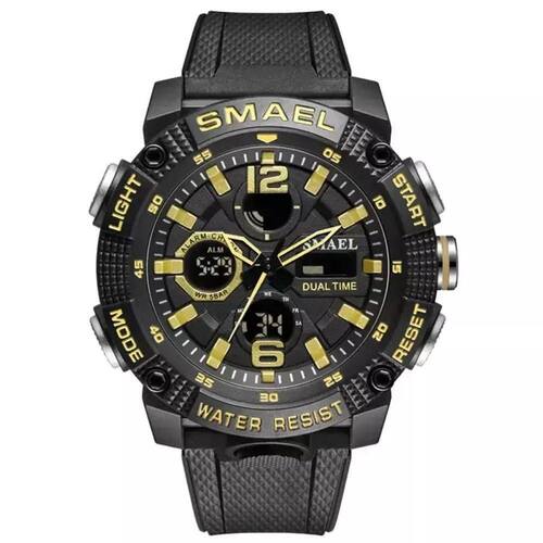 Transforme a forma como você percebe o tempo com o relógio militar digital SMAEL 8039, uma verdadeira obra-prima de engenharia e design esportivo. Este relógio não é apenas um acessório, é uma extensão do seu estilo de vida ativo, oferecendo funcionalidades que vão muito além de um simples marcador de horas. Totalmente à prova d'água até 50m, ele é o companheiro ideal para as suas aventuras, sejam elas em terra ou nas profundezas aquáticas. Com um display analógico-digital elegante e resistente, o SMAEL 8039 é o equilíbrio perfeito entre performance e estética.