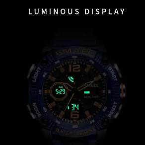 Transforme a forma como você percebe o tempo com o relógio militar digital SMAEL 8039, uma verdadeira obra-prima de engenharia e design esportivo. Este relógio não é apenas um acessório, é uma extensão do seu estilo de vida ativo, oferecendo funcionalidades que vão muito além de um simples marcador de horas. Totalmente à prova d'água até 50m, ele é o companheiro ideal para as suas aventuras, sejam elas em terra ou nas profundezas aquáticas. Com um display analógico-digital elegante e resistente, o SMAEL 8039 é o equilíbrio perfeito entre performance e estética.
