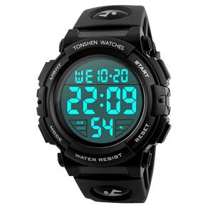 Explicação funcional 50M/5ATM à prova d'água, você pode usá-lo para nadar ou tomar banho, mas não pressione nenhum botão na água. Use movimentos de alta qualidade, forneça um tempo preciso e mantenha a vida útil de pelo menos 2 anos. A luz de fundo EL exibe claramente o tempo no escuro, desligando automaticamente após 5 segundos. Furo de vários níveis no perímetro à vontade, perfeito para seu pulso. Semana, data e hora ao mesmo tempo exibidas no LCD. Conversão de 12H e 24H à vontade, adequada para esportes ao ar livre. Cronômetro padrão 1/100. Forneça alarme de temporização. Material do produto Material da caixa: plástico Material da pulseira: borracha Material do cristal: resina Material da fivela: aço inoxidável Bateria: CR2 Informações de tamanho Comprimento total: grande 255 mm; diâmetro do mostrador pequeno de 250 mm: grande 50 mm* 57 mm; pequeno 43 mm* 48 mm Espessura do mostrador: grande 17 mm; pequeno 16 mm Perímetro máximo: grande 235 mm; pequeno 230 mm Perímetro mínimo: grande 170 mm; pequeno 160 mm (16 mm (3 mm) Peso: 60 g, característica do produto: 12H, horário padrão, 24 horas, horário militar, EL, luz de fundo, cronômetro, calendário, calendário de 50 m, pacote de alarme à prova d'água, contém relógios * 1 relógio, instrução em inglês * 1 dica. Por favor, não pressione qualquer botão na água.