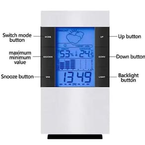 Estação Meteorológica Digital com Relógio, Termômetro e HigrômetroGaranta precisão nas medições e funcionalidade com esta Estação Meteorológica Digital, ideal para acompanhar a temperatura, umidade e previsões do tempo, tudo em um único aparelho.