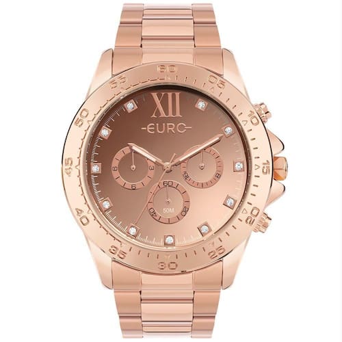 Relógio Euro Feminino Big Case Rosé - Euvd34ad/4j Euvd34ad/4j A linha Delux que já é sucesso de Vendas em Euro vem agora com mais um efeito diferenciado, seu mostrador é espelhado com aplicação de pedras nas horas. O aro é trabalhado com marcações de minutos . A caixa robusta e o maquinismo cronógrafo valorizam o relógio. Cor da Caixa - Rosê Formato da Caixa - Redondo Formato da Caixa - Redondo Garantia - 12 meses Cor do Mostrador - Marrom Cor da Pulseira - Rosê Genero - XML - Feminino Tamanho - XML - G Largura da Caixa (cm) - 4,6 Descrição da Resistência - A resistência deste produto permite apenas respingos de água ao lavar as mãos. Não utilizar este produto em qualquer situação que haja contato direto com água. meli_title - Relógio Euro Feminino Delux Rosé - EUVD34AD/4J Modelo_ML - Relógio Euro Feminino Delux Rosé - EUVD34AD/4J Cor - Rosé Tamanho - Grande Gênero - Feminino