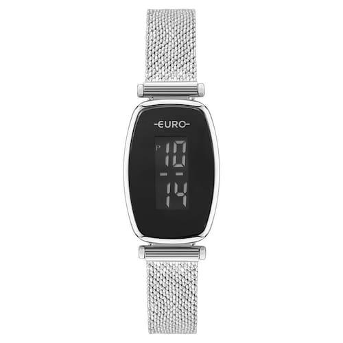 Relógio Euro Feminino Fashion Fit Glam Prata - Eujhs43aaa/4k Relógio Euro Feminino Ff Glam Prata - Eujhs43aaa/4k A coleção Fashion Fit traz modelos digitais que brilham com pulseira texturizada e efeito luminoso, enquanto a caixa quadrada com aro de alumínio e parafusos traz uma pegada moderna e ousada. A pulseira de mesh finaliza com aquele toque fashion que transforma tudo. Versão em banho prateado. Cor da Caixa - Prata Material da Caixa - Aço Formato da Caixa - Oval Material da Pulseira - Aço Garantia - 12 meses Cor do Mostrador - Preto Cor da Pulseira - Prata Largura da Caixa (cm) - 2,2 Resistente a Água - 3 ATM Descrição da Resistência - A resistência deste produto permite apenas respingos de água ao lavar as mãos. Não utilizar este produto em qualquer situação que haja contato direto com água. Cor - Prata Tamanho - Pequeno Gênero - Feminino