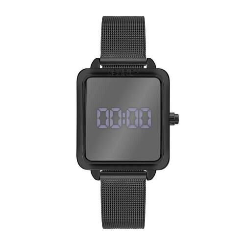 Coleção Fashion Fit Reflexos, best seller da Euro agora feita em tamanho menor O modelo apresenta uma caixa midi quadrada de 32mm, banho preto, pulseira mesh e mostrador led espelhado também preto seguindo o banho do relógio. Essa combinação é sucesso garantido