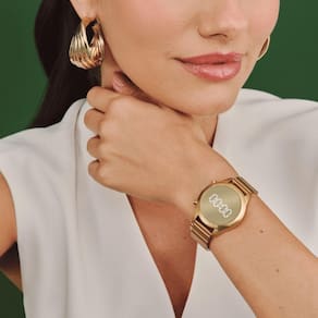 A coleção Fashion Fit não para de crescer! Trazendo relógios que toda mulher Euro ama, lançamento apresenta modelo Reflexo de caixa menor com acabamento todo escovado no banho dourado trazendo a tendência dos espelhados.
