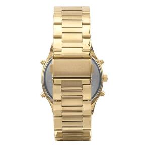 Sua caixa de 40 mm, em tonalidade dourada reluzente, transmite imponência sem perder a elegância. A pulseira de aço dourado com acabamento polido e fecho dobrável complementa o visual imponente da peça, ideal para quem deseja um acessório de presença marcante, mas fácil de combinar com qualquer look do esportivo ao casual-chique.
