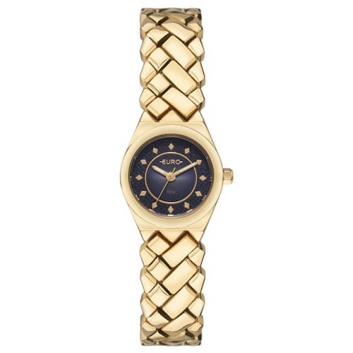 Relógio Euro Feminino Ref: Eu2035yxt/4a Fashion Dourado DESCRIÇÃO DO PRODUTO: Caixa de Metal Pulseira de Aço Vidro de Cristal Mineral Fundo Pressão Resistente à Água Até 5 Atm Diâmetro / Largura da Caixa: 24.00 MM Funções: Analógico Mostrador Azul Alimentação do Maquinário: Bateria Maquina Japonesa de 1 Ano