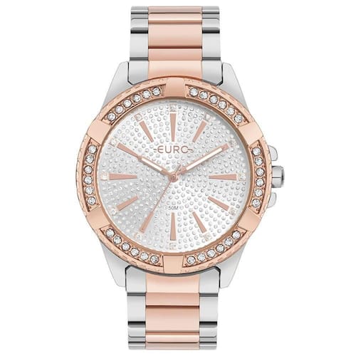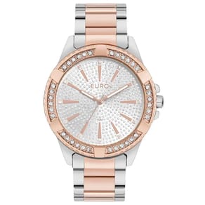 Relógio Euro Feminino Stones Bicolor - Eu2036ytu/4j Eu2036ytu/4j O lançamento de Stones vem com foco total no brilho, fazendo do relógio uma jóia. Possui aro trabalhado com detalhes e pedras que, junto com o mostrador todo com pontos de glitter valorizam o modelo. Ideal para trazer sofisticação nos looks do dia dia e até mesmo remeter à joalheria em looks mais sociais. Esse é a versão bicolor de prata com rosê. Cor da Caixa - Prata Formato da Caixa - Redondo Material da Pulseira - Aço Tipo de Fecho - Trava Lateral Garantia - 12 meses Cor do Mostrador - Prata Cor da Pulseira - Bicolor Largura da Caixa (cm) - 4,2 Resistente a Água - 5 ATM Descrição da Resistência - A resistência deste produto permite apenas respingos de água ao lavar as mãos. Não utilizar este produto em qualquer situação que haja contato direto com água. meli_title - Relógio Euro Feminino Stones - EU2036YTU/4J Modelo_ML - Relógio Euro Feminino Stones - EU2036YTU/4J Cor - Bicolor Tamanho - Grande Gênero - Feminino
