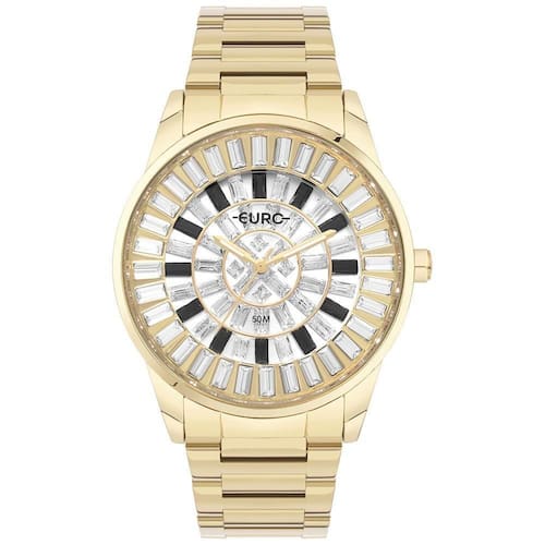 Relógio Euro Feminino Stones Dourado - Euy121f6aa/4k Euy121f6aa/4k Para Coleção Stones, trouxemos mais de 80 pedras divididas entre o aro e o mostrador, o relógio traz o luxo à coleção. A marcação das horas fica por conta do diferencial de cores das pedras, facilitando a leitura sem perder o poder. Ideal tanto para as mulheres que querem trazer um ponto de cor e brilho para os looks do dia a dia, tanto para compor qualquer visual à noite. Cor da Caixa - Dourado Formato da Caixa - Redondo Material da Pulseira - Aço Tipo de Fecho - Trava Lateral Formato da Caixa - Redondo Garantia - 12 Meses Cor do Mostrador - Prata Cor da Pulseira - Dourado Genero - XML - Feminino Tamanho - XML - G Largura da Caixa (cm) - 4,2 Resistente a Água - 5 ATM Descrição da Resistência - A resistência deste produto permite apenas respingos de água ao lavar as mãos. Não utilizar este produto em qualquer situação que haja contato direto com água. plaintext_description_meli - Relógio Euro Feminino Stones Dourado - EUY121F6AA/4KPara Coleção Stones, trouxemos mais de 80 pedras divididas entre o aro e o mostrador, o relógio traz o luxo à coleção. A marcação das horas fica por conta do diferencial de cores das pedras, facilitando a leitura sem perder o poder. Ideal tanto para as mulheres que querem trazer um ponto de cor e brilho para os looks do dia a dia, tanto para compor qualquer visual à noite. meli_title - Relógio Euro Feminino Stones Dourado - EUY121F6AA/4K Modelo_ML - Relógio Euro Feminino Stones Dourado - EUY121F6AA/4K Cor - Dourado Tamanho - Grande Gênero - Feminino