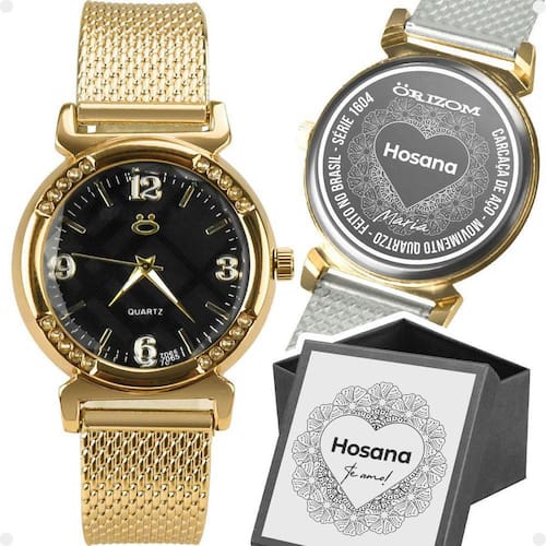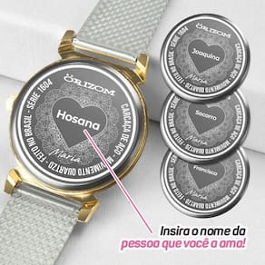 Surpreenda alguém especial com uma personalização única Adicione o nome da pessoa amada tanto na tampa do relógio quanto na caixa premium, tornando o presente ainda mais especial e memorável. O processo é simples: 1. Adquira o produto. 2. No campo de mensagem, envie o nome que deseja gravar no relógio e na caixa
