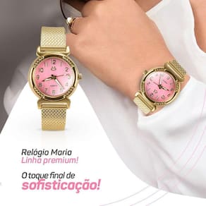 Relogio feminino aço inox dourado silicone banhado + caixa Adicione luxo e personalidade ao seu estilo com o Relógio Feminino Orizom Maria