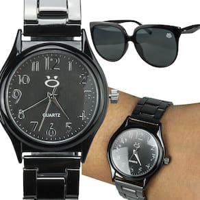Kit Elegância Feminina - Estilo e Sofisticação em Cada Detalhe - Relógio Feminino Analógico Orizom Maria Todo Preto (Black Piano): Aproveite a qualidade ultra premium do relógio Orizom Maria, todo em aço inoxidável e com uma elegante arte de coração na tampa blindada. Não perca a oportunidade de adquirir esse acessório essencial para qualquer ocasião! - Óculos de Sol Orizom Maria: Proteja seus olhos com estilo com o óculos de sol Orizom Maria, com armação preta (black piano) feita em acetato e proteção UV. Aproveite a qualidade e o design sofisticado desse acessório. Kit Ideal para Presentear ou Uso Diário - Qualidade Ultra Premium: Este kit é uma garantia de durabilidade, estilo e conforto. Uma escolha refinada para presentear alguém especial ou para uso diário. - Estilo e Sofisticação: Cada peça deste conjunto destaca-se por sua elegância e sofisticação, refletindo bom gosto e atenção aos detalhes. Não deixe de adquirir este kit excepcional! Adquira agora este kit excepcional que oferece uma experiência de estilo único e atemporal, ideal para mulheres que apreciam acessórios de alta qualidade. Ean: 7891551141990