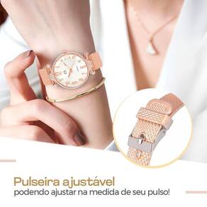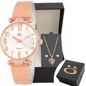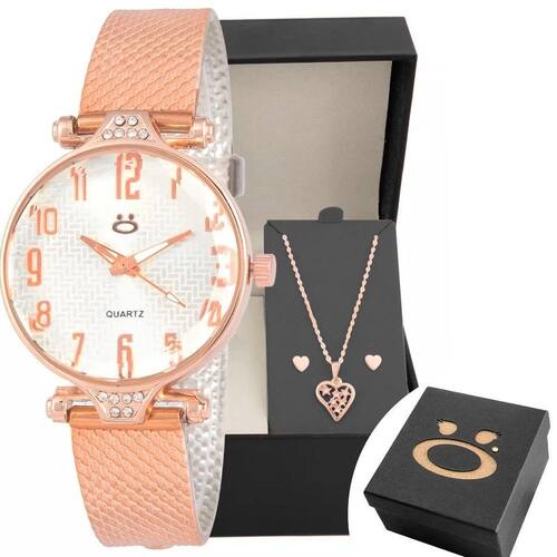 Relógio Feminino Aço Inox Rosê + Colar + Brincos - Orizom Maria Relógio Feminino Orizom - Modelo Maria