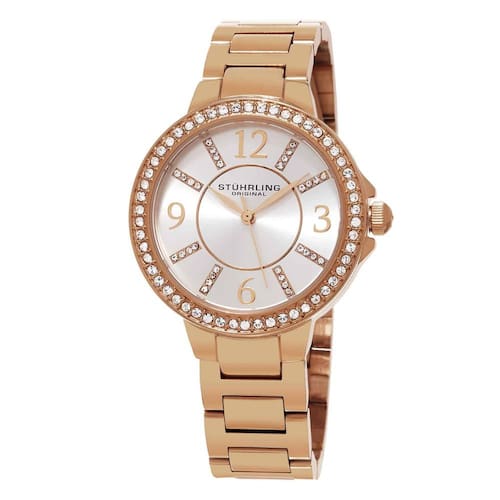 Este relógio possui tamanho de 35mm e é resistente à água, suportando até 50 metros ou 165 pés. A moldura é feita inteiramente de cristal e a pulseira é de ligação de aço inoxidável.