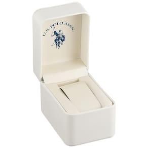 O US Polo Assn. A coleção time wear consiste em relógios clássicos atualizados, projetados para fashionistas mais conscientes do estilo. Os relógios são projetados com caixas elegantes, revestimento especial e pulseiras esportivas de couro, borracha ou metal para oferecer uma variedade de visuais. O US Polo Assn. A coleção de relógios combina qualidade, tendências da moda atuais, o espírito do esporte e valor. Achamos que você vai se apaixonar pela US Polo Assn. coleção de relógios. Oficial US Polo Assn. CAIXA PERFEITA PARA PRESENTE A caixa fácil de abrir é perfeita para embrulhar para presente e possui o logotipo oficial na parte superior. Movimento de quartzo analógico Diâmetro da caixa Não resistente à água
