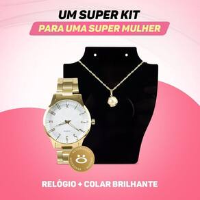 Relogio feminino banhado aço prova dagua + colar ponto luz social presente qualidade premium casual descrição do produto: