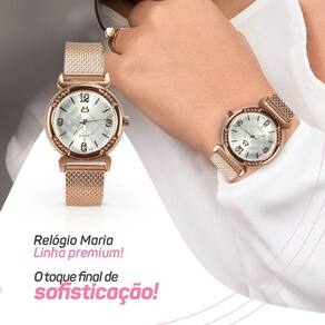 Relogio feminino caixa aço inox banhado rose silicone Eleve seu estilo com o Relógio Feminino Orizom Maria Uma fusão perfeita de luxo e personalidade, este relógio exclusivo apresenta um design de rosê banhado com um fundo preto, emanando sofisticação e elegância. Seu maquinário em aço inoxidável garante precisão e durabilidade, enquanto a pulseira em silicone ajustável oferece conforto incomparável, adaptando-se a todos os tamanhos de pulso com facilidade. Além disso, vem acompanhado de uma elegante caixa premium Orizom Maria, proporcionando segurança e estilo ao guardar o relógio.