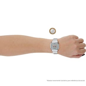 Relógio Casio digital, apresenta cronômetro, alarme, calendário, resistente à água. Acompanha manual de instruções e certificado de garantia de 1 ano pelo fabricante.