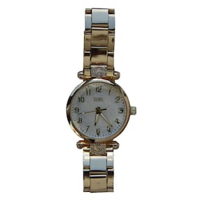 Especificações Técnicas: Material da Pulseira: Aço Inoxidável de cor Dourado Material da Caixa: Liga de Metal, Mecanismo: Quartzo Resistente a agua, Não é A PROVA D'AGUA.