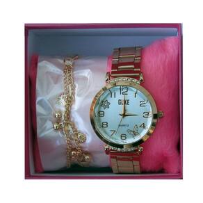 Especificações Técnicas: Material da Pulseira: Aço Inoxidável de cor Dourado Material da Caixa: Liga de Metal Mecanismo: Quartzo Resistente a agua, Não é A PROVA D'AGUA.
