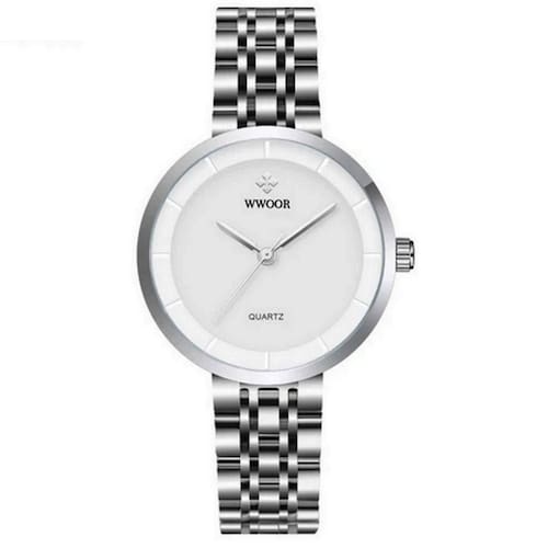 Relógio Feminino De Quartzo Minimalista Pulseira De Aço Inoxidável A Prova D´agua Branco Prata