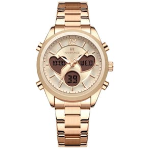 Feito para impressionar, este relógio acompanha a rotina diária com funcionalidades práticas e um design luxuoso. Seja para um look casual ou uma ocasião mais formal, ele é o presente ideal para quem deseja surpreender e encantar. Sua face em hardlex e o acabamento em aço inoxidável garantem durabilidade, além de proporcionar um charme único ao pulso.