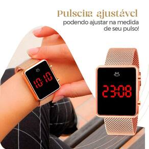 Detalhes do produto: 1. Relógio feminino digital orizom maria - estilo: digital com visor quadrado, moderno e fácil de ler. - maquinário: banhado em rosê, oferecendo uma aparência chique e contemporânea. - pulseira: silicone ajustável, confortável para o uso diário e versátil para combinar com diversos estilos.