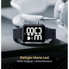 Detalhes do produto: - modelo: relógio feminino digital orizom maria - display: digital, formato quadrado, claro e fácil de ler - maquinário: acabamento todo preto com pintura eletrostática, garantindo maior durabilidade e resistência - pulseira: silicone preto, ajustável, proporcionando conforto para uso diário - caixa: premium orizom maria, desenhada especificamente para acomodar o relógio, ideal para presentear