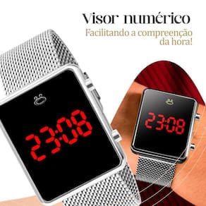 Conteúdo do Kit: - 1 Relógio Feminino Digital Orizom Maria - 1 Pulseira Estilo Pandora em Prata Aço Inoxidável (Os detalhes da pulseira podem variar de acordo com a disponibilidade em estoque, podendo ser enviado com detalhes e desenhos diferentes) - 1 Caixa Premium Orizom Maria para Acomodar o Relógio