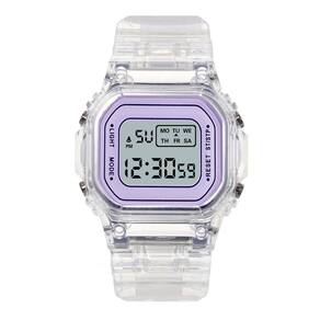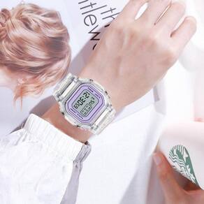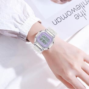 Relógio feminino digital emborrachado lilás silicone + caixa