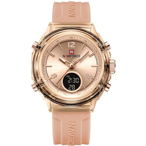 Este relógio deslumbrante é a escolha perfeita para mulheres que valorizam tanto a moda quanto a funcionalidade. Com um design retro e feminino, o relógio de quartzo possui um mostrador dual, analógico e digital, que proporciona uma leitura precisa e rápida das horas, mesmo em condições de pouca luz, graças às suas funções luminosas. Ideal para atividades esportivas, ele é resistente à água até 5bar, tornando-se o companheiro perfeito para nadar e outras aventuras aquáticas, sem comprometer o estilo.