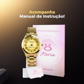 O RELÓGIO QUE A MARIA DA SUA VIDA PRECISA TER! Relógio desenvolvido com muito amor, em homenagem a uma pessoa que foi muito importante para a Orizom! A dona Maria! Então se você tem uma Maria tão especial quanto a que foi para a Orizom, então este é o presente ideal! Com mostrador númerico, ele possibilita uma fácil comprensão das horas quando precisar e em todo momento você terá uma peça que abrilharantará seu pulso, seja no trabalho, em uma festa ou no dia a dia! Acompanha um MANUAL DE INSTRUÇÕES totalmente ilustradi e desenvolvido em português, com linguagem direta e objetiva! Esqueça manuais feitos em chinês ou inglês dificultando sua compreensão no momento de configurar seu relógio! Enviamos uma pilha reserva, além da que já vai dentro do relógio para garantir uma vida útil maior que suas expectativas!