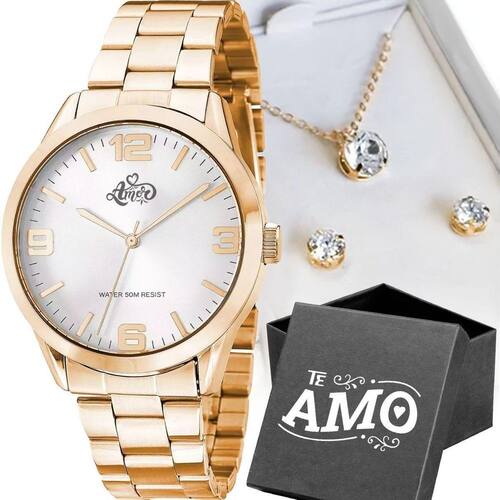 - Relógio Feminino Orizom Maria - Tipo: Analógico ponteiro - Formato: Redondo - Diâmetro da Caixa: Cerca de 3,5 cm - Cor: Dourado banhado - Mostrador: Dourado - Material: Aço inoxidável - Tampa: Blindada com arte exclusiva Te Amo e detalhes de autenticidade Orizom