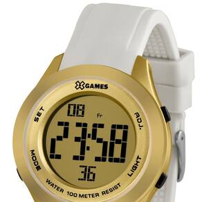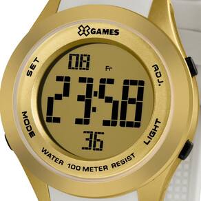 Relógio Feminino Dourado E Branco Digital X-Games O Relógio é um dos acessórios mais presentes em todas as fases da nossa vida, mesmo com inúmeros dispositivos modernos que mostram as horas, o clássico relógio para pulso não perdeu seu charme e é uma ótima opção para complementar o visual. O Relógio Feminino Dourado E Branco Digital X-Games é perfeito para uso pessoal ou para presentear alguém especial em uma data comemorativa, sendo um presente único, de ótimo gosto, elegância e muita praticidade. Produzido com materiais resistentes e de qualidade, a peça reúne sofisticação e estilo em um único item. A escolha perfeita para mulheres elegantes que gostam de ter um acessório incrível para complementar o look em qualquer ocasião. Informações Básicas Marca: X-Games Referência: XMPPD598 CXBX Gênero: Feminino : 1 Ano em Toda Rede de Assistência Técnica Características: Composição do Vidro: Acrílico Material da Caixa: Resina Cor da Caixa: Dourado Material da Pulseira: Silicone Cor da Pulseira: Branco Mostrador: Digital Dourado Cor do Bisel: Dourado Funções: Alarme Cronômetro Timer Dual Time Dia da Semana Dia do Mês Luz Noturna 12/24 Horas Medidas: Diâmetro Da Caixa: 4,2 cm Espessura da Caixa: 0,9 cm Largura da Pulseira: 2,0 cm Resistência a Água: 100 Mts/ 10 ATM Pode Lavar as Mãos: Sim Pode Usar em Água Corrente: Sim Pode Usar na Piscina: Sim Pode Usar em Mergulho Profundo: Não Acompanha: Manual de Instrução Certificado de Caixa da X-Games