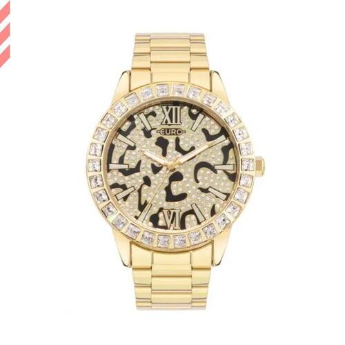 Relogio feminino dourado fundo onça euro eu2036ytg/4p