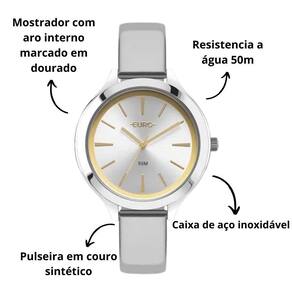 a oficial mix é uma uma empresa especializada em vendas de produtos multimarcas, que desde 2015 encanta os seus clientes, oferecendo produtos de excelente qualidade, , com garantia de fábrica e com preços imbatíveis. Gênero: feminino cor: prata mecanismo: analógico tamanho da caixa: médio material da caixa: aço material da pulseira: aço inoxidável material do vidro: cristal mineral comprimento do relógio: 24cm espessura da caixa: 0,8cm dimensões da caixa: 4,5cm de diâmetro nível de resistência à água:50m pulseira ajustável: sim calendário: não possui cronômetro: não possui função chime: não possui função de aviso de hora cheia garantia do fabricante: garantia do relógio de 1 ano. Produto.