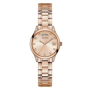 Especificações técnicas Mecanismo: Analógico Tipo de Movimento: Quartzo Material da Caixa: Aço inoxidável Cor da Caixa: Rose gold Material da Pulseira: Aço inoxidável Cor da Pulseira: Rose gold Fecho: Dobrável com trava de Formato da Caixa: Redondo Mostrador: Rose com cristais aplicados como marcadores Funções: Horas, minutos, segundos, dia da semana e data Vidro: Mineral Resistência à Água: 3 ATM (resistente a respingos leves) Diâmetro da Caixa: 36 mm Espessura da Caixa: 8 mm Garantia: 12 meses pelo fabricante